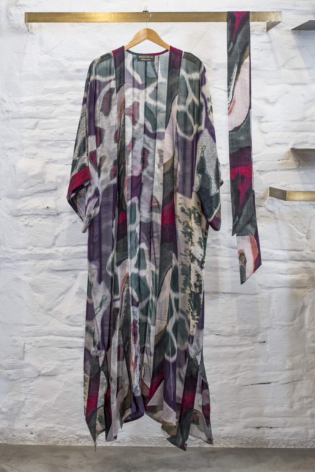 The long Kimono is like a light, fluid coat. It creates an airy silhouette with simplicity. It is versatile. You can wear it belted or open. It works for many occasions. During the day, wear it over a dress or shorts. In the evening, wear it over pants with heels. It is elegant and comfortable. It represents effortless style, both chic and practical.