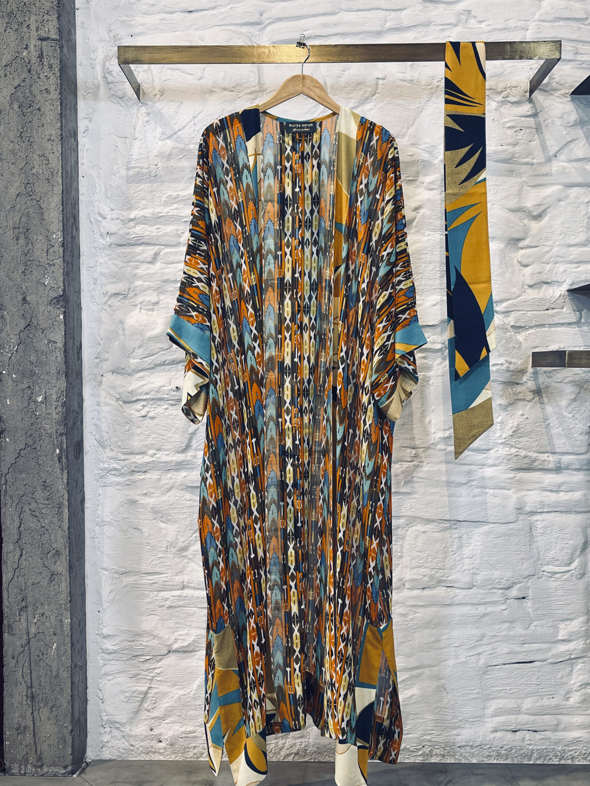 The long Kimono is like a light, fluid coat. It creates an airy silhouette with simplicity. It is versatile. You can wear it belted or open. It works for many occasions. During the day, wear it over a dress or shorts. In the evening, wear it over pants with heels. It is elegant and comfortable. It represents effortless style, both chic and practical.