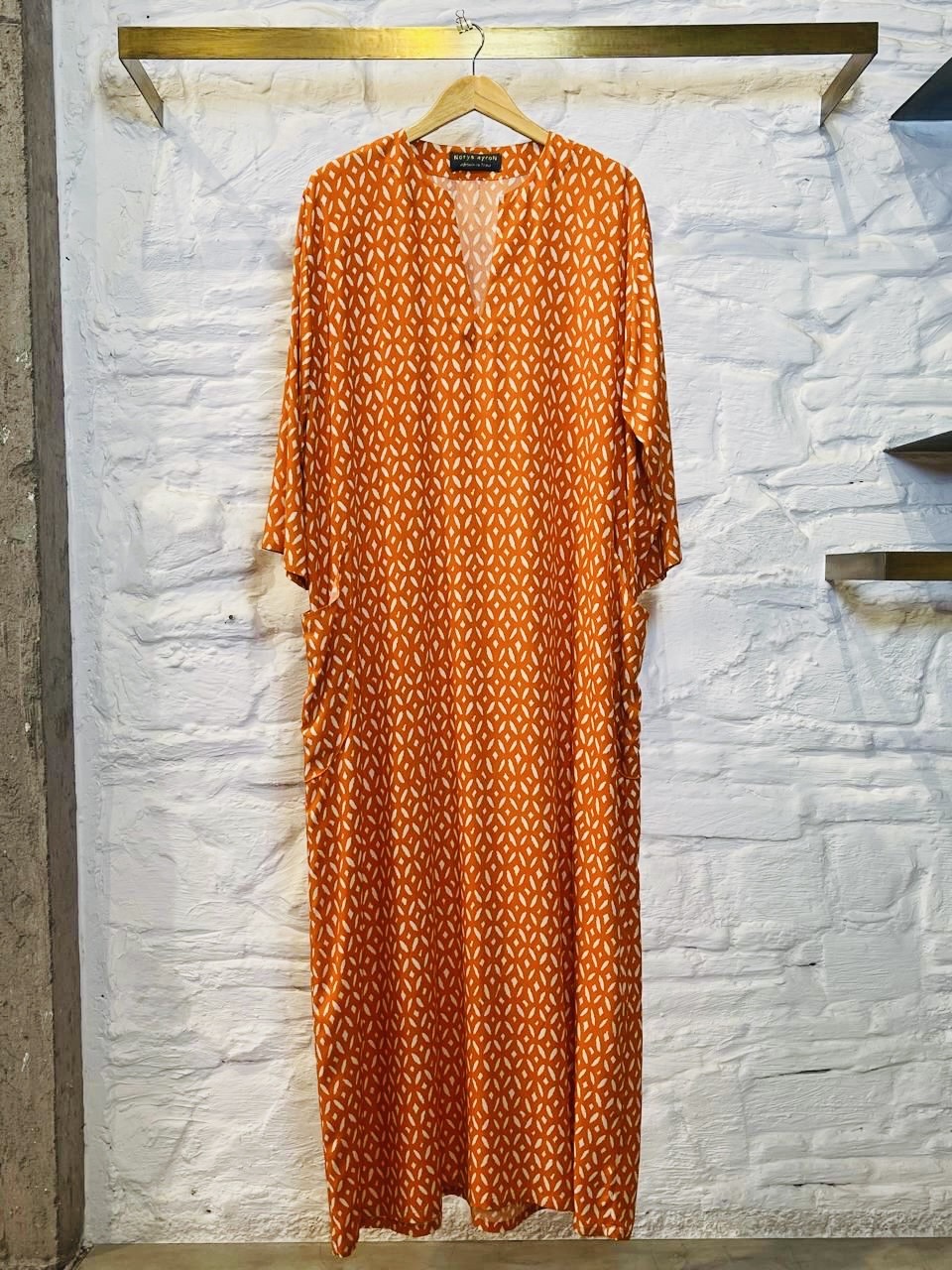 The Azza dress is long and comfortable. It is loved for its freedom of movement, practicality, and natural elegance. It is a bestseller. It is a key piece, easy to wear in all situations.