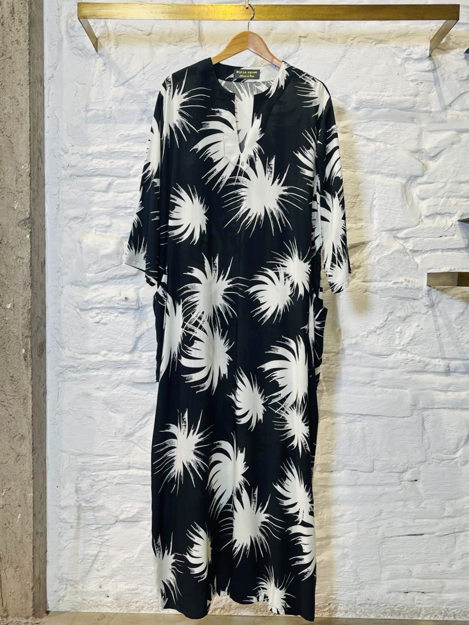 The Azza dress is long and comfortable. It is loved for its freedom of movement, practicality, and natural elegance. It is a bestseller. It is a key piece, easy to wear in all situations.