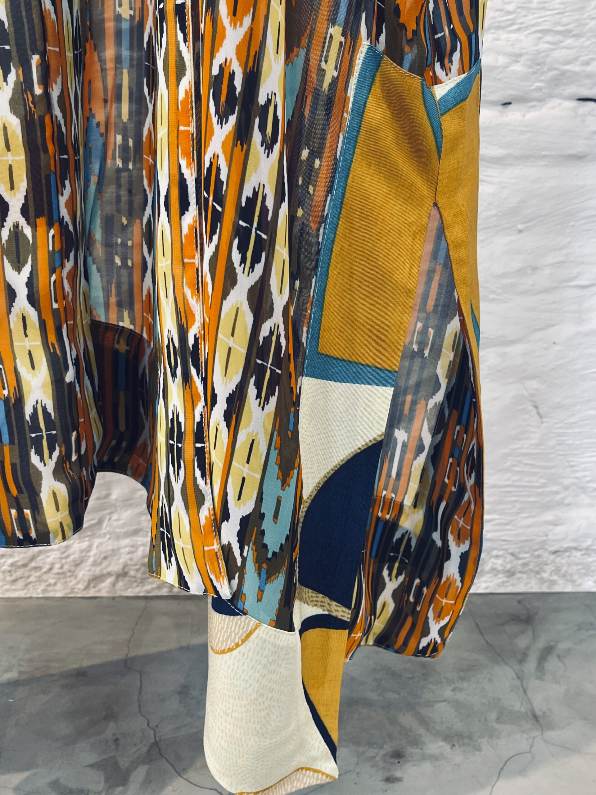 The long Kimono is like a light, fluid coat. It creates an airy silhouette with simplicity. It is versatile. You can wear it belted or open. It works for many occasions. During the day, wear it over a dress or shorts. In the evening, wear it over pants with heels. It is elegant and comfortable. It represents effortless style, both chic and practical.