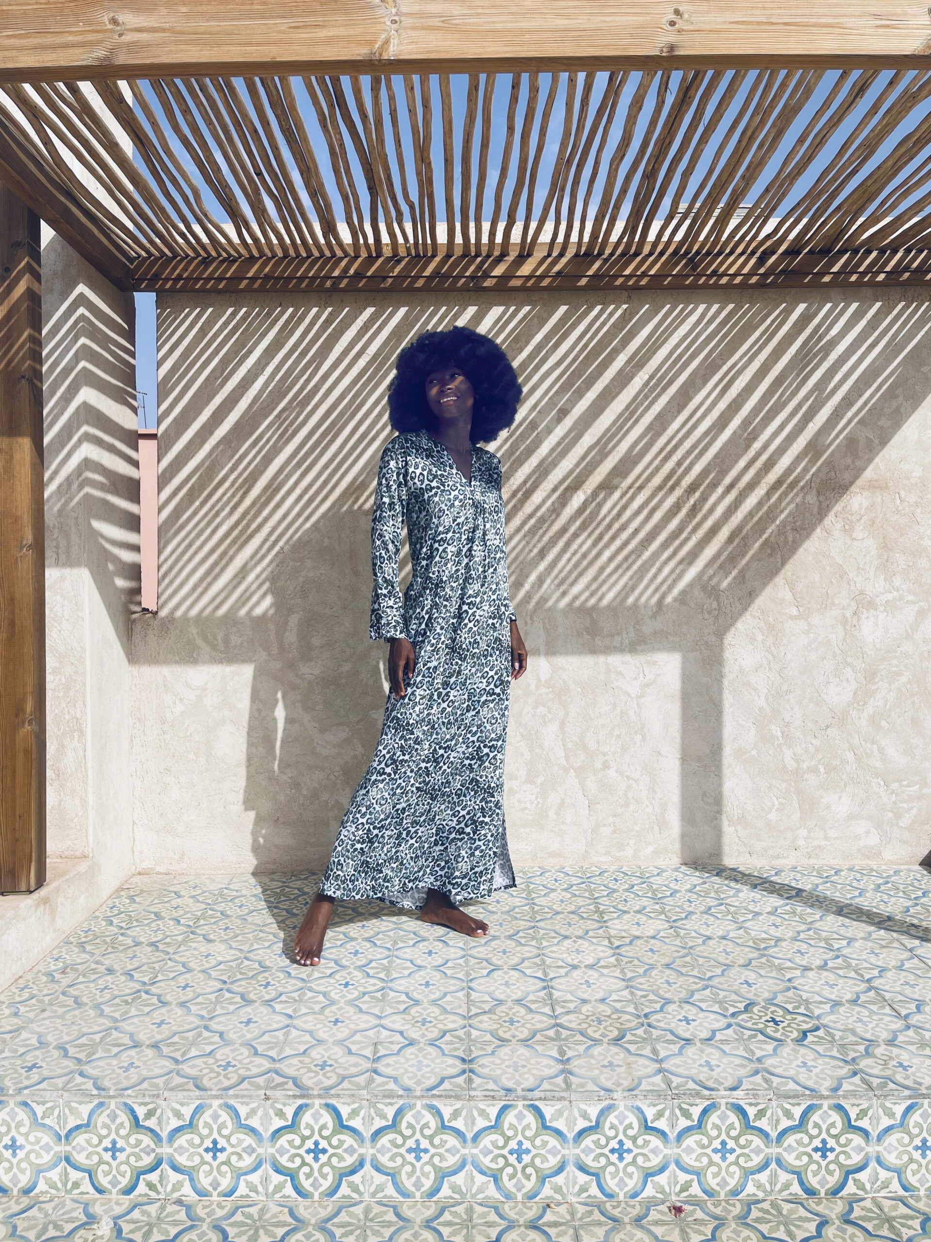 The New Abaya redefines the timeless elegance of the long dress with a modern twist. Its V-neck subtly highlights the neck. Its long sleeves with cuffs provide structure and sophistication. The open side slits give it a fluid, sensual movement. It showcases the figure without restriction. Ultra-feminine and easy to wear, it adapts to all occasions and flatters many body types.