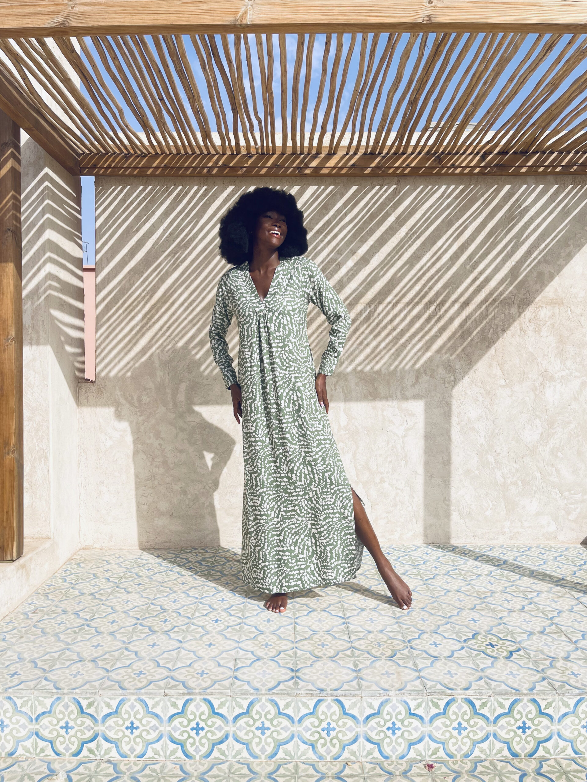 The New Abaya redefines the timeless elegance of the long dress with a modern twist. Its V-neck subtly highlights the neck. Its long sleeves with cuffs provide structure and sophistication. The open side slits give it a fluid, sensual movement. It showcases the figure without restriction. Ultra-feminine and easy to wear, it adapts to all occasions and flatters many body types.