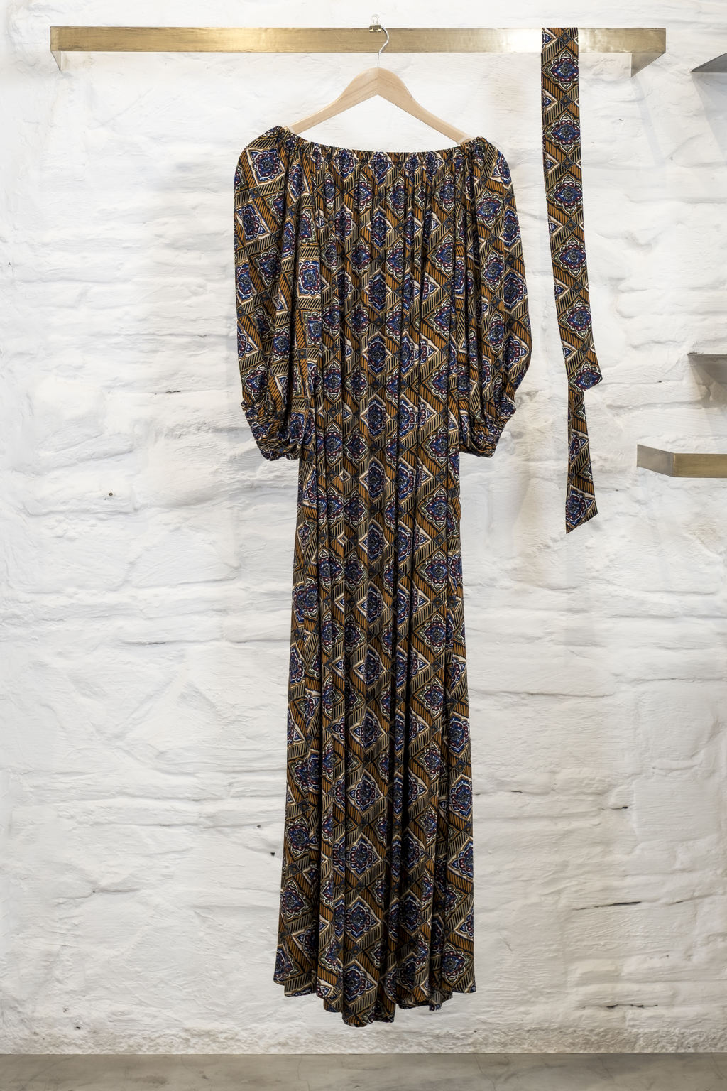The Safia dress is long and very feminine. It has elastic shoulders that reveal the skin. It has light and romantic balloon sleeves. It combines comfort and elegance. It offers a sophisticated and graceful silhouette in all circumstances.