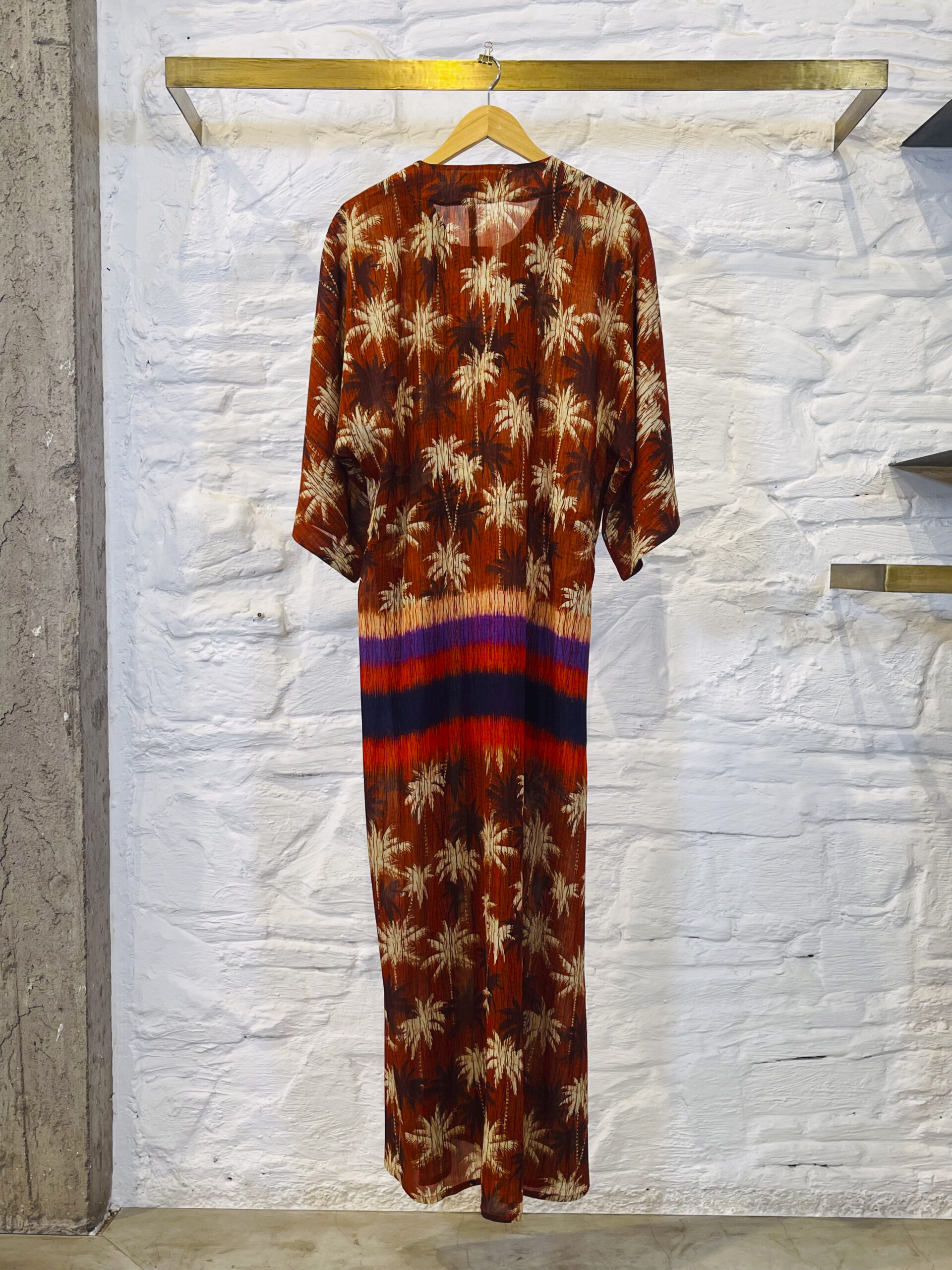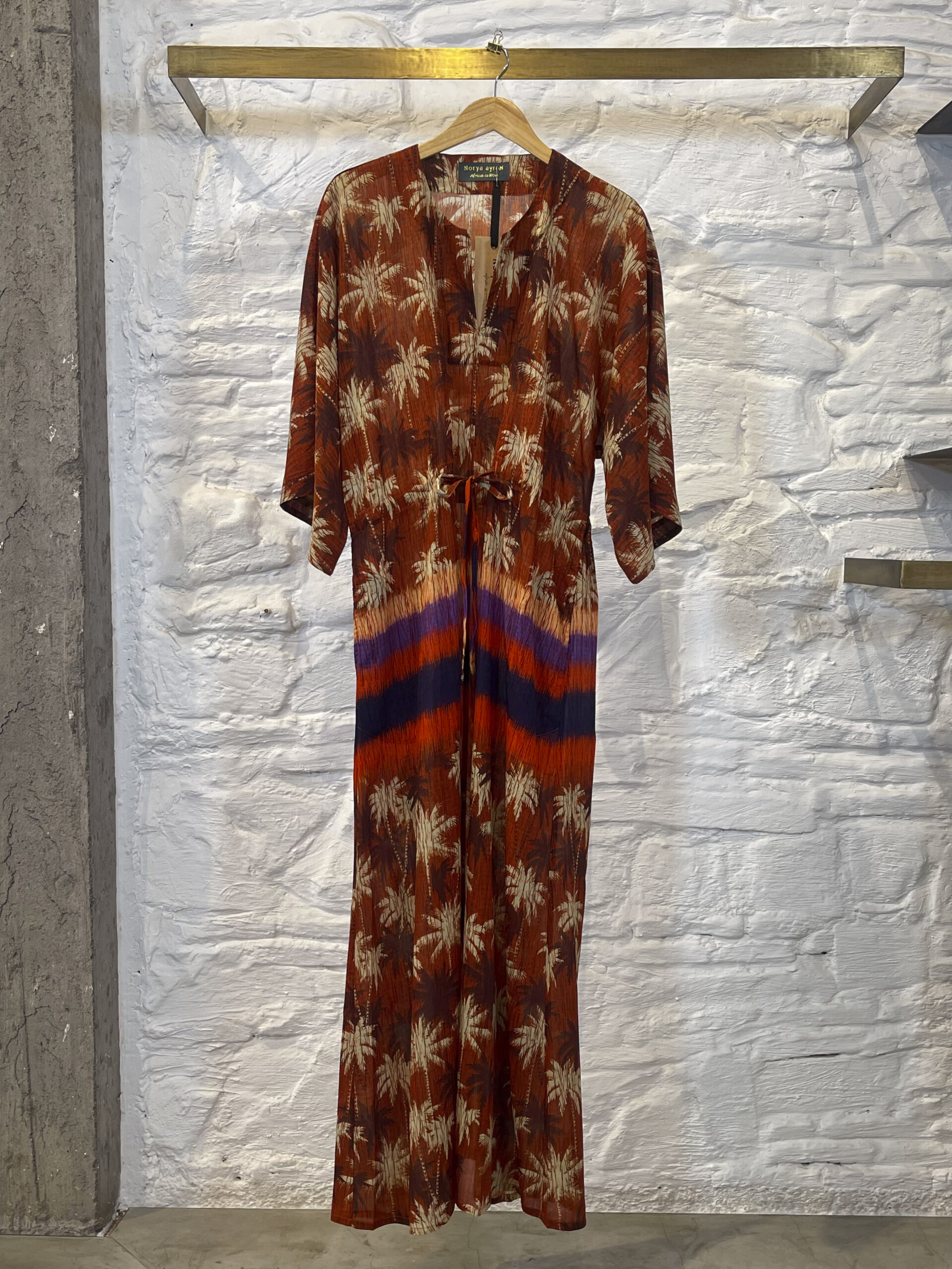 The Yasmin dress is long and fluid. It has kimono sleeves and a waist tie. This tie elegantly highlights the silhouette. It is easy to wear and designed for all body types. It offers a very feminine look. Light and airy, it is the ideal piece for the summer season.